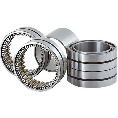 常见类型如下: 1. 四列圆柱滚子轴承 • 结构特点:由四个滚动体列组成,径向承载能力极强,可承受重载荷和冲击载荷,轴向位移能力有限(需配合推力轴承使用)。 • 应用场景:常用于热轧机、冷轧机的工作辊或支撑辊,尤其适用于高精度轧制场景。 2. 四列圆锥滚子轴承 • 结构特点:四列圆锥滚子呈一定角度排列,可同时承受径向和轴向载荷,刚性好,能适应复杂载荷工况。 • 应用场景:适用于可逆式轧机、连续轧机的支撑辊,可应对轧制过程中的轴向力(如跑偏引起的侧向力)。 3. 四列调心滚子轴承 • 结构特点:带有球面滚道,具有自动调心功能,可补偿轧机安装误差或变形引起的轴线偏斜,径向承载能力强。 • 应用场景:多用于轧辊挠度较大或对调心性能要求高的轧机,如中厚板轧机、型钢轧机。 4. 推力滚子轴承 • 结构特点:专门承受轴向载荷,常与径向轴承配合使用,确保轧辊轴向定位精度。 • 应用场景:冷轧机、箔材轧机等对轴向精度要求高的设备,防止轧辊轴向窜动影响板材厚度均匀性。 5. 交叉滚子轴承 • 结构特点:滚动体交叉排列,可在有限空间内承受高径向、轴向及倾覆力矩,刚性好。 • 应用场景:小型轧机或精密轧机的轧辊支撑,如冷轧带钢轧机的工作辊轴承。